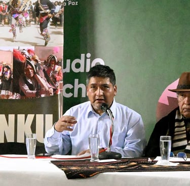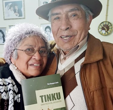 Tito Burgoa Coria y su familia agradecen a todos los presentes e invitan a sumergirse en un viaje a las raíces de la identidad cultural andina, a través de su libro "TINKU: Gran Fiesta del Encuentro". Esta obra representa un hito en el estudio de las tradiciones andinas, ofreciendo una mirada profunda y rigurosa al origen y significado de uno de los rituales más emblemáticos de nuestra cultura.
